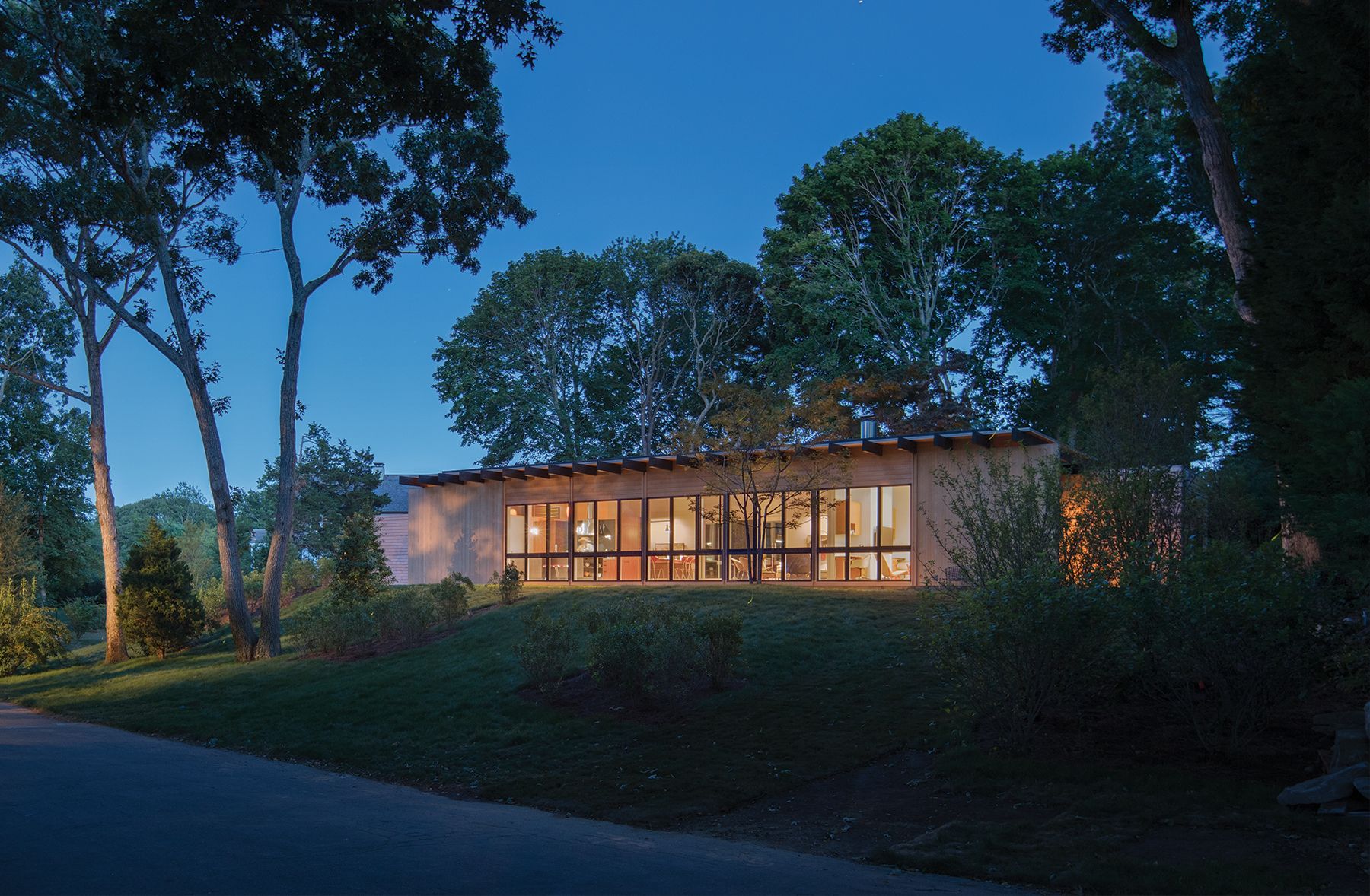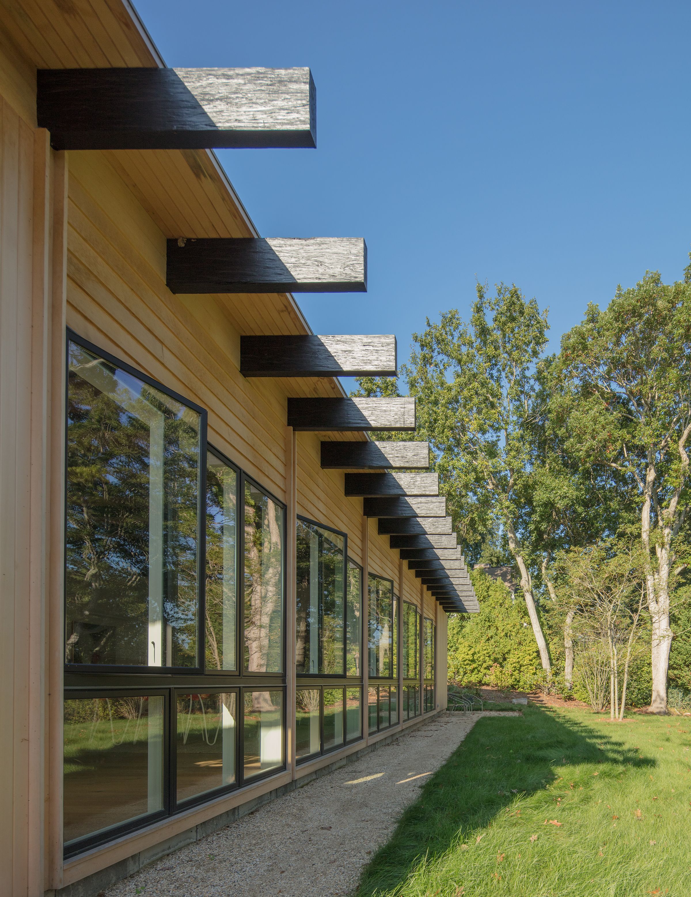 This 3,000 sf private residence sits just outside of the village of Sag Harbor, NY. The house is situated on the highest point of the property to take advantage of the water views. It is comprised of three volumes, the Great Room, featuring kitchen, dining, and living areas, the Master Suite, and the Guest Wing. A lap pool and an adjacent courtyard provide space for outdoor entertaining.